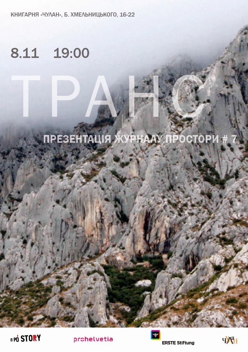 У п’ятницю, 8 листопада о 19:00 у книгарні «Чулан» (вул. Б. Хмельницького, 16-22) відбудеться презентація нового номера журналу «Простори» під назвою «Транс».